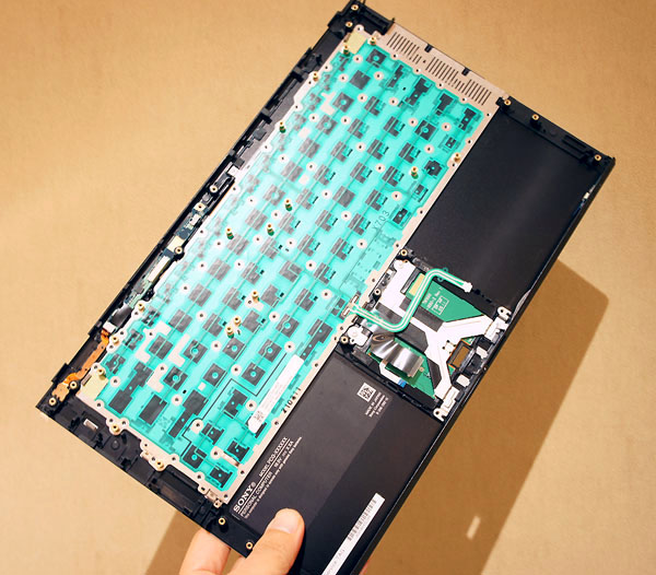 º»Ã¼ »ó´Ü ¾ÈÂÊ ºÎºÐÀÔ´Ï´Ù. Űº¸µåÆÇÀÌ µ¶Æ¯ÇÑ ÇüŸ¦ º¸¿©ÁÖ°í ÀÖ½À´Ï´Ù. ¿ö³« º»Ã¼°¡ ¾ã°Ô Á¦À۵Ǿî Àִµ¥´Ù °í¼º´É ÇÁ·Î¼¼¼­, µà¾óÆÒ ½Ã½ºÅÛ µîÀ» ³»ÀåÇϰí Àֱ⠶§¹®¿¡ Űº¸µå ½ºÆ®·ÎÅ©¸¦ À§ÇÑ ÃæºÐÇÑ »çÀÌÁ È®º¸ÇÏÁö ¸øÇÏ¿´½À´Ï´Ù.