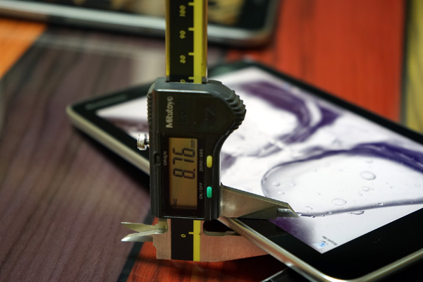 ·¹³ë¹ö MiixÀÇ µÎ²²¸¦ °°Àº ¹æ½ÄÀ¸·Î ÃøÁ¤ÇØ º¸¾Ò½À´Ï´Ù. °á°ú ±ÔÁ¤ µÎ²²ÀÎ 8.35mm¸¦ 0.3mm Á¤µµ ÃʰúÇÏ´Â 8.76mm¸¦ ³ªÅ¸³Â½À´Ï´Ù. ¾ÆÀÌÄÚ´Ï¾Æ W4¿¡ ºñÇØ¼­´Â ¾à 2mm Á¤µµ ¾ã±º¿ä. ±âº»ÀûÀÎ È޴뼺Àº ¾ÆÀÌÄÚ´Ï¾Æ W4 ´ëºñ ·¹³ë¹ö Mixx2°¡ ´õ ¿ì¼öÇÕ´Ï´Ù.
