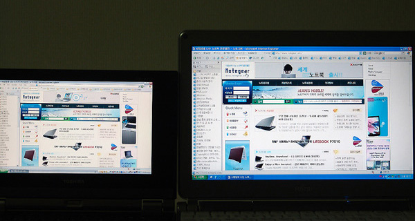 ÇöÀç 10.6ÀÎÄ¡ ¿ÍÀÌµå ¾×Á¤À» žÀçÇÑ ¸ðµ¨ÀÎ ÈÄÁöÂê P7010, ¼Ò´Ï ¹ÙÀÌ¿À T27 ±×¸®°í °ð Ãâ½Ã¸¦ ¾ÕµÎ°í ÀÖ´Â ¿¡¹ö¶óÅØ 1000 ½Ã¸®ÁîÀÇ °æ¿ì 1280¡¿768 (WXGA) ÇØ»óµµ¸¦ ¹ü¿ëÀ¸·Î »ç¿ëÇϰí ÀÖ´Ù.  À§ÀÇ »çÁø¿¡¼­ º¼ ¼ö ÀÖ´Â °Íó·³ ¿ÞÂÊ Libretto U100¿¡¼­ Ç¥½ÃµÇ´Â Å×½ºÆ®ÀÇ Å©±â´Â ¿À¸¥ÂÊÀÇ 10.6ÀÎÄ¡ ¾×Á¤¿¡¼­ Ç¥½ÃµÇ´Â ÅØ½ºÆ®¿¡ ºñÇØ È®¿¬ÇÏ°Ô ÀÛ´Ù´Â °ÍÀ» È®ÀÎÇÒ ¼ö ÀÖ´Ù.