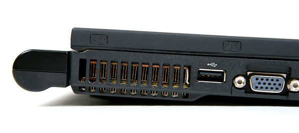³ëÆ®ºÏÀÇ ÁÂÃøÀ» º¸°Ú½À´Ï´Ù. ¾ÈÂʺÎÅÍ ¿­¹èÃⱸ, ±× ¿·À¸·Î USB 2.0 ´ÜÀÚ¿Í ¿ÜºÎ ¸ð´ÏÅÍ ´ÜÀÚ, ±â°¡ºñÆ® ·£´ÜÀÚ, 1°³ÀÇ PCMCIA ½½·Ô, ±× ¹ØÀ¸·Î SD ¸Þ¸ð¸® ½½·ÔÀÌ À§Ä¡ÇØ ÀÖ½À´Ï´Ù.