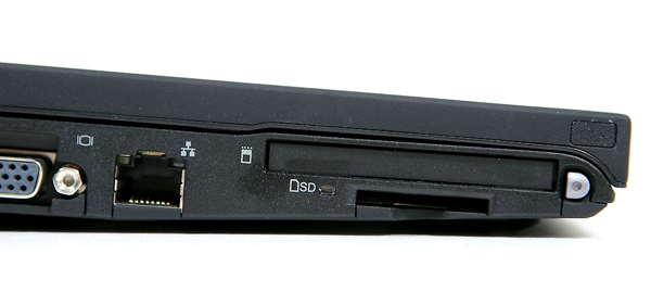 ³ëÆ®ºÏÀÇ ¿ìÃø¸éÀ» º¸°Ú½À´Ï´Ù. ¹Ù±ùÂʺÎÅÍ Àû¿Ü¼± Åë½Å Æ÷Æ®, 4ÇÉ ±Ô°ÝÀÇ 1394 Æ÷Æ®, µÎ °³ÀÇ USB 2.0 ´ÜÀÚ, ÇìµåÆù Ãâ·Â ´ÜÀÚ, ¿ÜºÎ ¸¶ÀÌÅ© ÀÔ·Â ´ÜÀÚ, 2.5ÀÎÄ¡ ¹ü¿ë Çϵåµð½ºÅ© º£ÀÌ, ¸ðµ© ´ÜÀÚ, Àü¿ø ÀÔ·Â ´ÜÀÚ, µµ³­ ¹æÁö¿ë ¶ôȦÀÌ À§Ä¡ÇØ ÀÖ½À´Ï´Ù. È®Àå ½½·Ô°ú Çϵåµð½ºÅ© ¾÷±×·¹À̵å È¿À²¼º ºÎºÐ¿¡¼­ X40º¸´Ù È®¿¬ÇÏ°Ô ¹ßÀüµÈ ¸ð½ÀÀ» º¸¿©ÁÖ°í ÀÖ½À´Ï´Ù.
