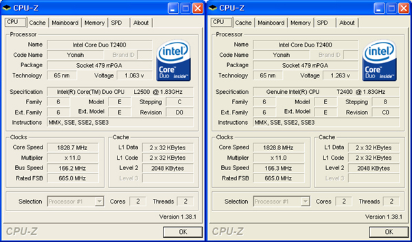 »çÁø¼³¸í : ThinkPad X60s/X60¿¡ žÀçµÈ ÀÎÅÚ ÄÚ¾î µà¿À L2500(1.83GHz) ¹× ÄÚ¾î µà¿À T2400(1.83GHz)ÀÇ Á¤º¸