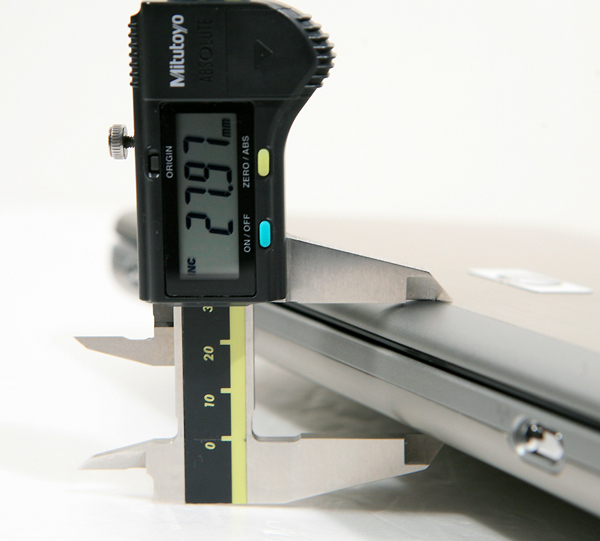 »ç¿ëÀÚ°¡ ½ÇÁ¦ ü°¨ÇÒ ¼ö ÀÖ´Â µÎ²²µµ 27.97mm·Î Å©°Ô ´Ù¸£Áö ¾Ê½À´Ï´Ù. ÃÖ±Ù 10mm ¹Ì¸¸ÀÇ ÃʹÚÇü ¸ðµ¨µéµµ ½É½ÉÄ¡ ¾Ê°Ô µîÀåÇÕ´Ï´Ù¸¸, ºÎÇǸ¦ ÃÖ¼ÒÈ­ÇÑ ¹Ì´Ï³ëÆ®ºÏ¿¡¼­´Â ¾ã°Ô ¼³°èµÇ¾ú´Ù°í ¸»ÇÒ ¼ö ÀÖ´Â ¼öÄ¡ÀÔ´Ï´Ù.