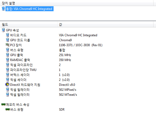»çÁø¼³¸í : VIA Chrome9 HC ±×·¡ÇÈ ÄÚ¾î(256MB)ÀÇ ¼¼ºÎ Á¤º¸