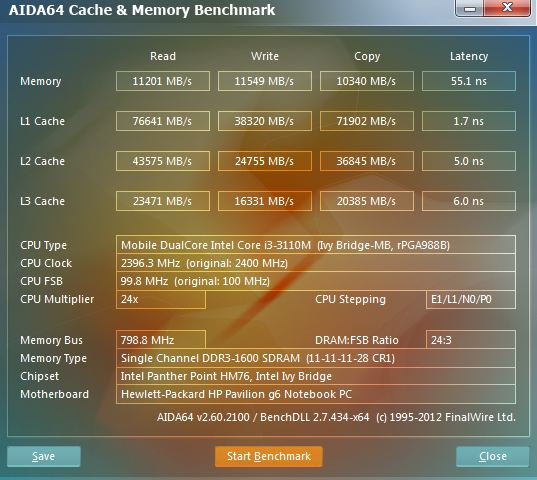 »çÁø¼³¸í : AID64 ¹öÀüÀ» »ç¿ëÇÏ¿© ¸®ºä ¸ðµ¨¿¡ žÀçµÈ ÀÎÅÚ ÄÚ¾î i3 3110M ÇÁ·Î¼¼¼­(2.4GHz, L3 ij½Ã 3MB)ÀÇ Ä³½Ã ¹× ¸Þ¸ð¸® ´ë¿ªÆø ¼º´ÉÀ» Å×½ºÆ®ÇÑ °á°úÀÔ´Ï´Ù.
